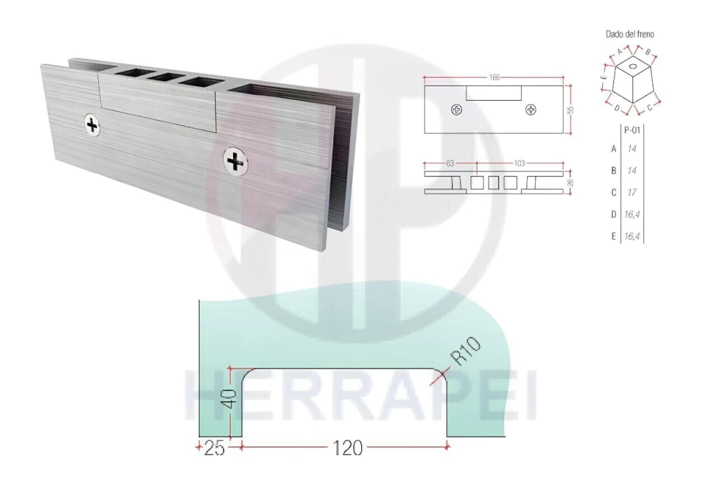 - Kit Pivotante Linea P Grande para Cierrapuerta Hidraulico de Piso, Para Puerta de Vidrio Blindex de espesor 10 mm.